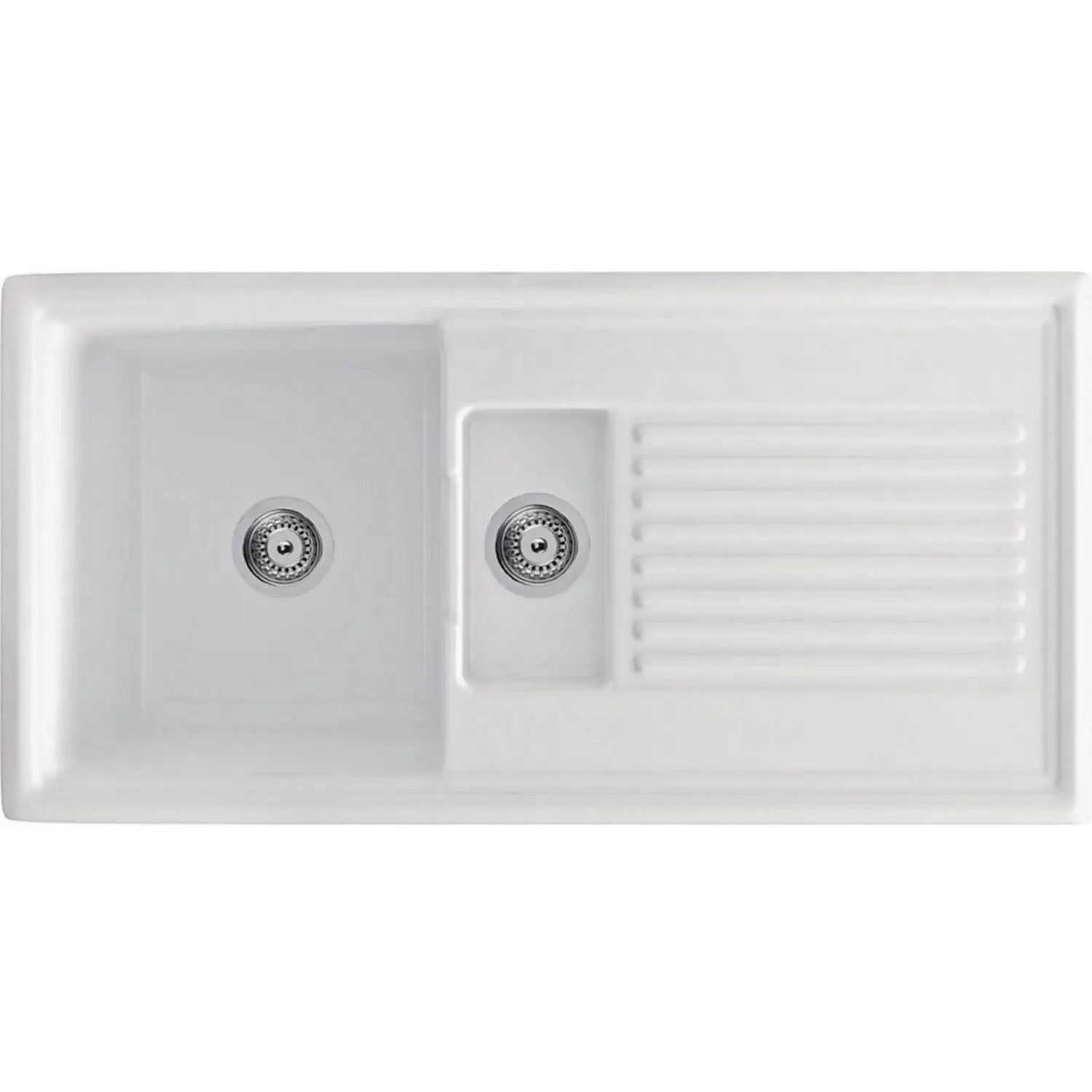 This 1.5 bowl ceramic sink will provide a classic finish to your kitchen. The deep bowl accommodates more than your average sink helping you to avoid cluttering your worktop with dirty plates or pots and pans.