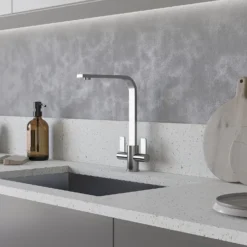 The GROHE StartEdge single-lever kitchen tap fuses clean lines and clean edges, is a delight to operate and performs perfectly for a lifetime. The elegant lever feels solid in the hand and the medium high spout swivels smoothly through 140˚ for added comfort and versatility. It is also packed with cutting edge GROHE technology. GROHE QuickFix Plus uses a simple shaft-coupling system for easy tool-free fitting that cuts the installation time by up to 70%. Thanks to the GROHE Zero feature, the inner waterways are separated so your water is guaranteed to be 100% free of lead and nickel. The GROHE Longlife ceramic cartridge ensures the control of water flow and temperature is smooth and precise. The dazzling but durable GROHE StarLight chrome finish will stay looking pristine for years to come. And when you want to clean or replace the aerator it can be unscrewed easily with a coin – simplicity for a modern life!